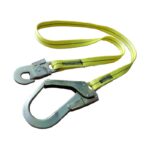 Fabricado en cinta plana bicolor 25 mm amarillo/negro (poliester) con mosquetón (simple) doble cierre de seguridad en un extremo y gancho estructurero (simple) doble cierre de seguridad en el otro extremo.