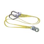 Fabricado en Cinta (poliester) plana amarilla de 25 mm. con Mosquetón Simple doble cierre de seguridad en un extremo y dos Ganchos Estructureros doble cierre de seguridad en los otros extremos.
