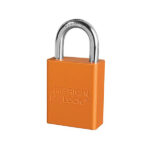El candado de aluminio 1105 de American Lock, con llave maestra (una llave maestra abre todos los candados del sistema a pesar de que cada candado tiene su propia llave única) tiene cuerpo de aluminio anodizado disponible en diversos colores.