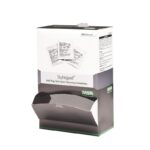Dispensador con 100 sachets de toallitas húmedas para la limpieza de sus anteojos, ideal para implementar estaciones de limpieza en sus aplicaciones de trabajo.